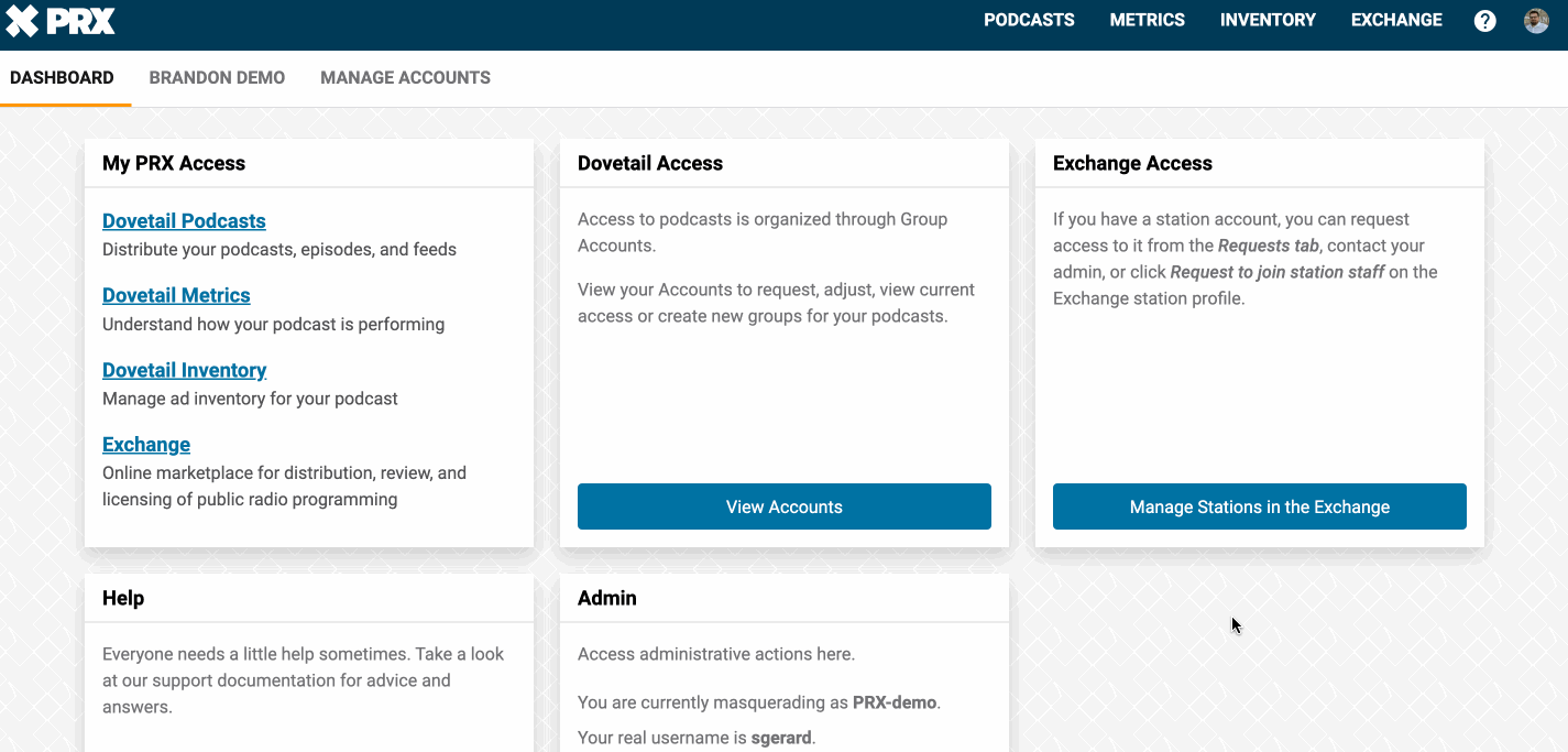Step 1 - Log into Dovetail Podcasts through id.prx.org