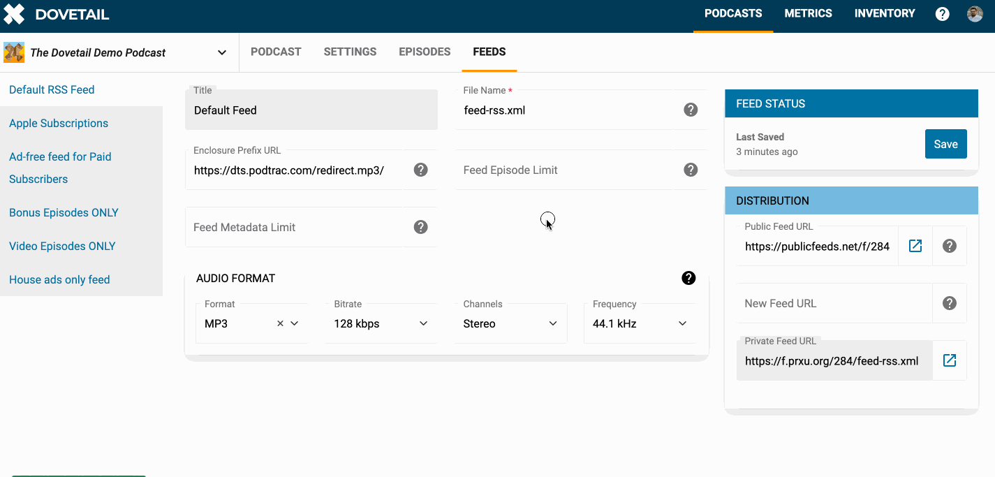 Enclosure prefix URLs are often provided by podcast attribution or metrics tracking applications (such as Podtrac, Podroll, etc) to track, measure or analyze a podcast's performance. The enclosure prefix URL provided by the third party is embedded in your RSS feed and ensures that all download requests for an episode are re-routed through their servers as well as Dovetails’. If you’d like to know more about prefixes, Sounds Profitable has a lovely explainer here.