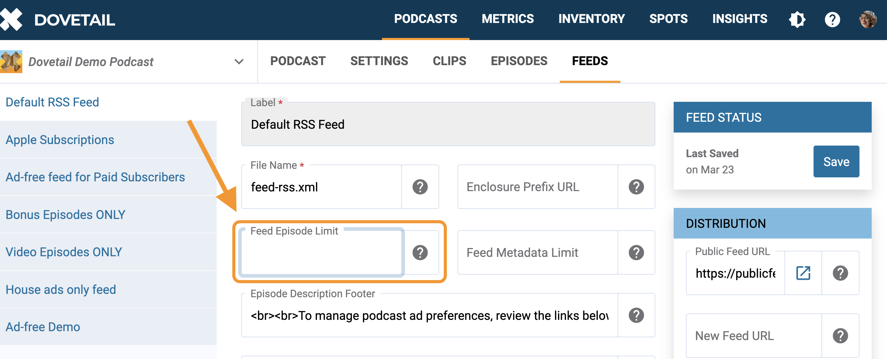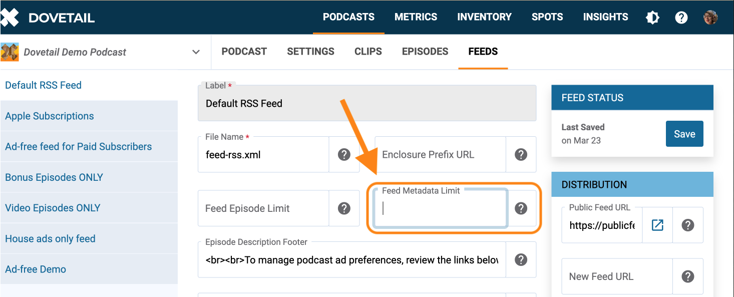 Dovetail offers two options for limiting metadata within the Feeds settings for your show.
