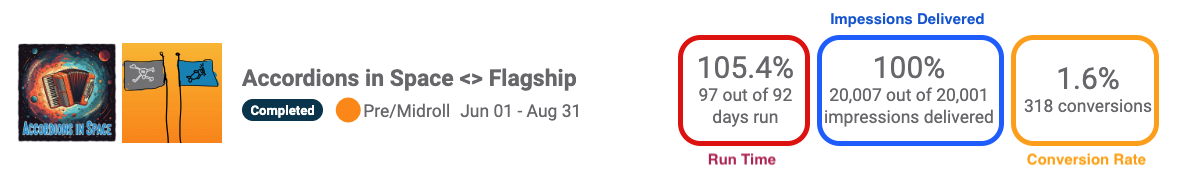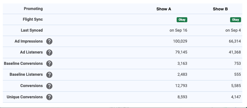 | Unique Conversions | Unique listeners of your podcast that got the cross-promo, but were already shared listeners between the podcasts. |
