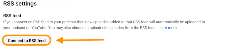 - If your episode is available in the RSS Feed connected to YouTube then progress to Step 2.