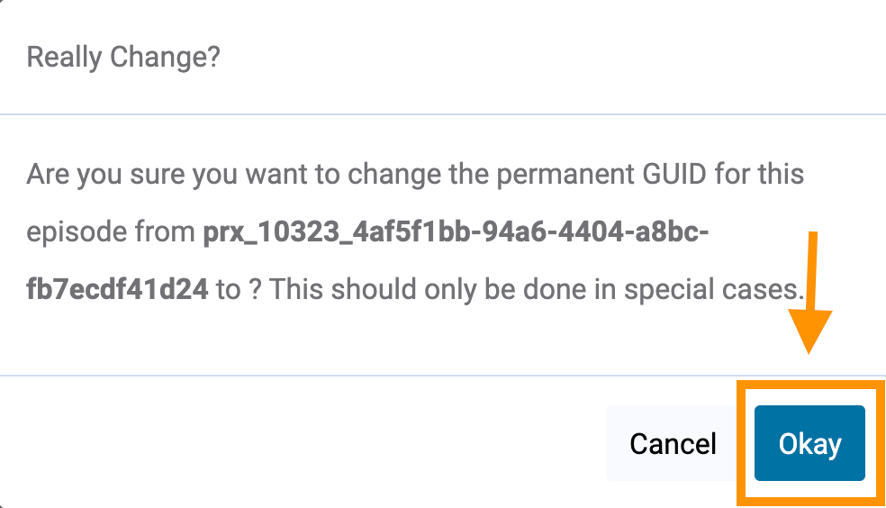 - Copy the GUID generated by your hosting provider for the episode. Replace the GUID in Dovetail with the one from your current hosting provider to ensure both episodes share the same GUID.