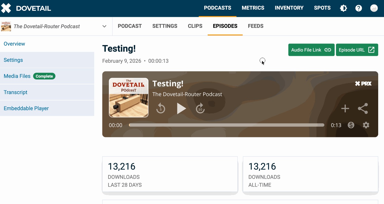 Gaining perspective on the success of podcasts’ content is now more accessible than ever in Dovetail Podcasts! Just click through to your Podcasts’ Overview tab to access your podcasts’ stats at a glance!